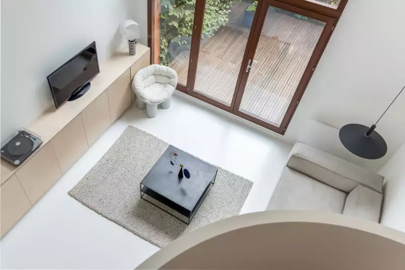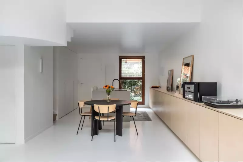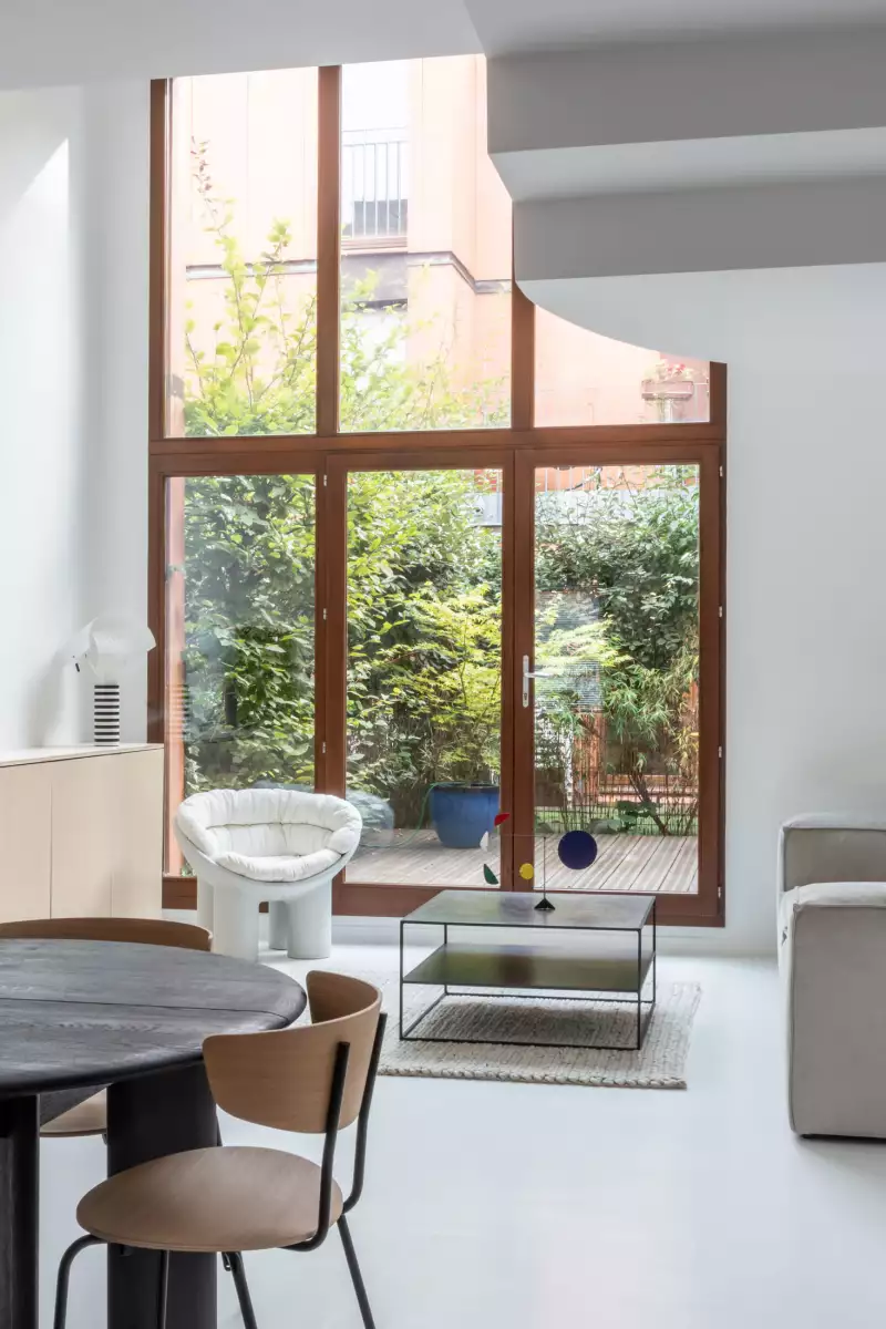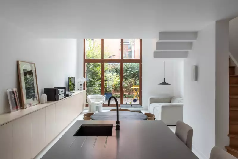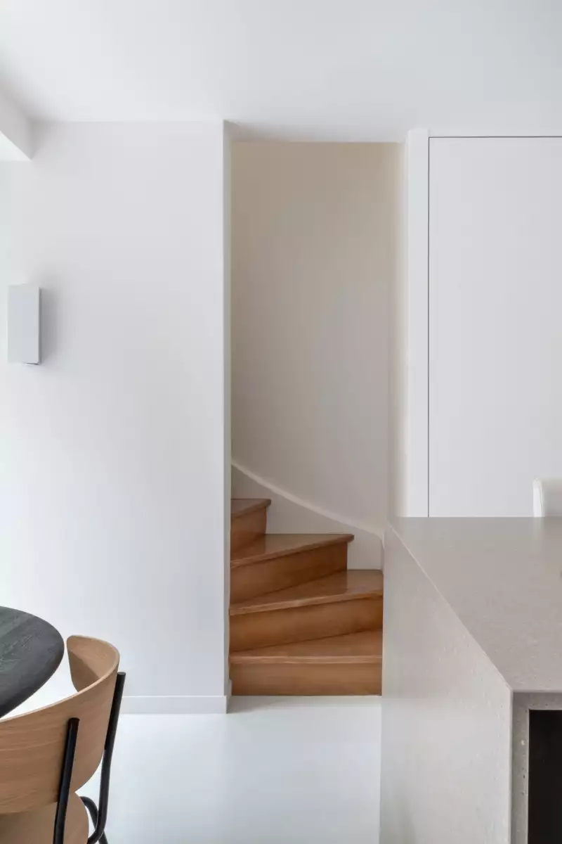 Réhabilitation d’un duplex en rez-de-jardin pensée autour de l’ouverture et de la continuité intérieur-extérieur. L’approche minimaliste, résolument contemporaine, privilégie des lignes épurées, une palette sobre et des matériaux bruts soigneusement sélectionnés. L’ensemble compose un espace lumineux, apaisé et ouvert sur son environnement.